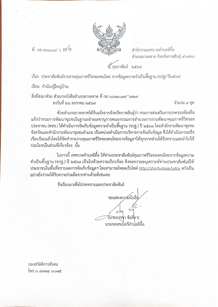 ประชาสัมพันธ์รายงานคุณภาพชีวิตของคนไทย จากข้อมูลความจำเป็นพื้นฐาน (จปฐ) ปี ๒๕๖๘