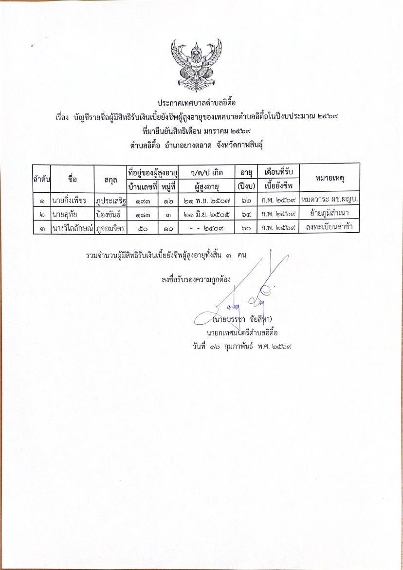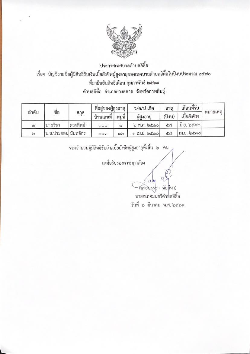 - ประกาศเทศบาลตำบลอิตี้อ , 6 มีนาคม 2569