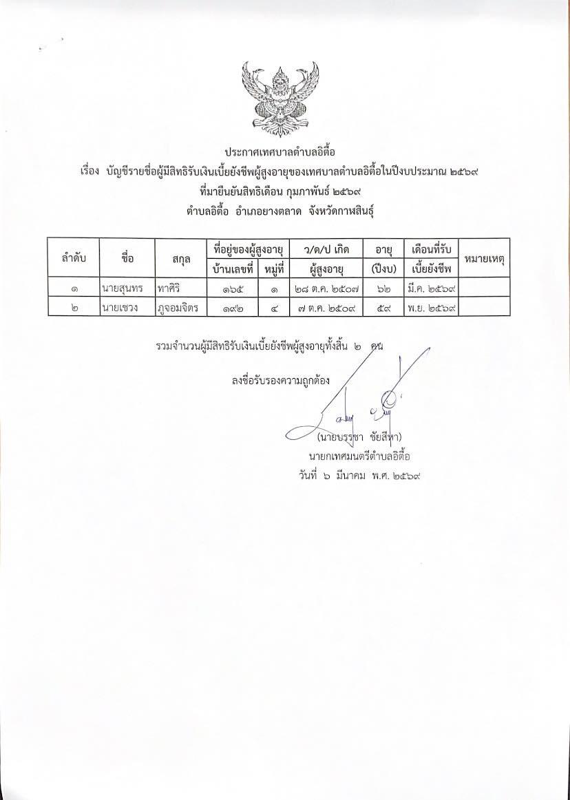 - ประกาศเทศบาลตำบลอิตื้อ , 6 มีนาคม 2569