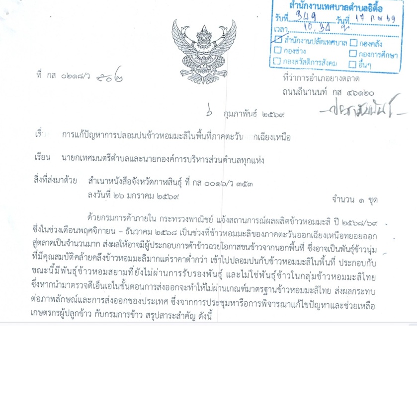 การแก้ปัญหาการปลอมปนข้าวหอมมะลิในพื้นที่ภาคตะวันออกเฉียงเหนือ